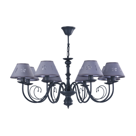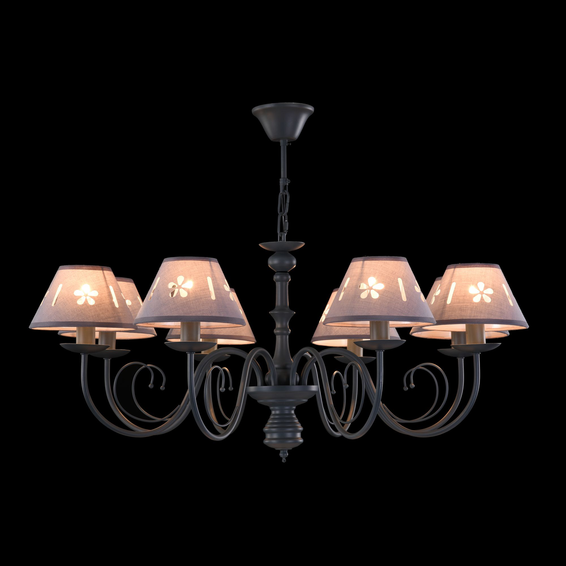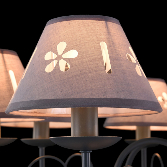 Арматура сделана металла серого или белого матового цвета, абажуры — из ткани с вырезанными цветами. Основания бра декорированы лепниной.
