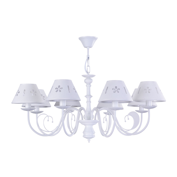 Арматура сделана металла серого или белого матового цвета, абажуры — из ткани с вырезанными цветами. Основания бра декорированы лепниной. Модель представлена в 2-х цветах. Белый цвет - Артикул FR2537PL-08W