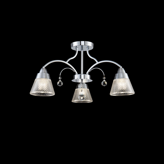 Металлическая арматура цвета "хром" и форма плафонов из прозрачного рифленого стекла выполнены в современном стиле, а подвески в виде шариков - это классический элемент.