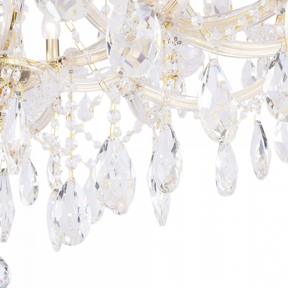 Арматура из металла. Декоративные розетки из стекла. Подвески разнообразной формы: октагон, капля, шар. Модель комплектуется лампочками Voltega и средством для чистки хрусталя. Дополнительный год гарантии.