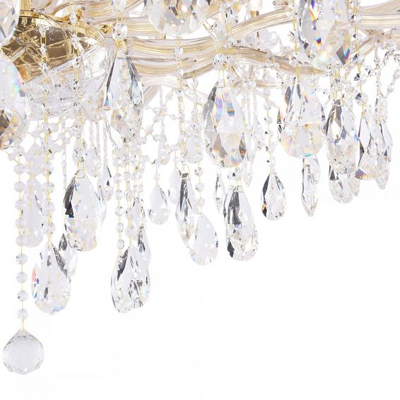 Арматура из металла. Декоративные розетки из стекла. Подвески разнообразной формы: октагон, капля, шар. Модель комплектуется лампочками Voltega и средством для чистки хрусталя. Дополнительный год гарантии.