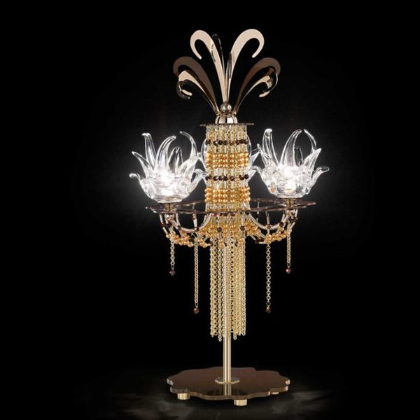 Каркас изготовлен из металла, плафоны из муранского стекла, декоративные элементы - кристаллы Swarovski.