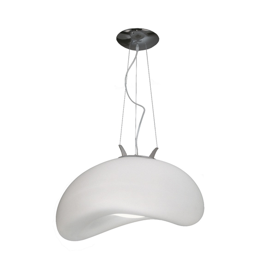 Каркас из хромированного металла, в некоторых деталях с полированными деталями из никеля. Атласное белое выдувное муранское стекло