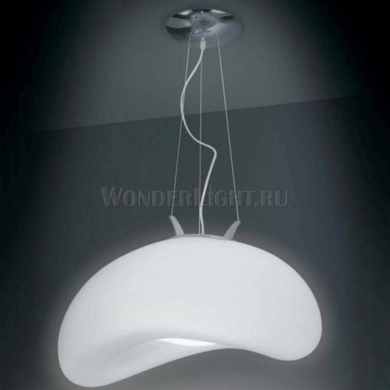 Каркас из хромированного металла, в некоторых деталях с полированными деталями из никеля. Атласное белое выдувное муранское стекло