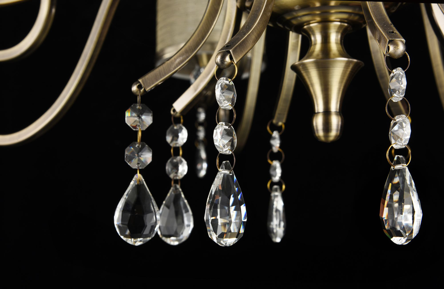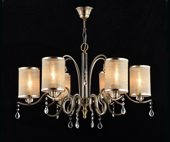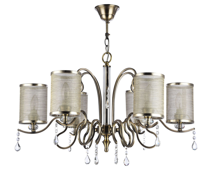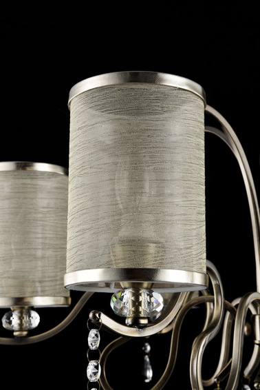 Полупрозрачные абажуры из органзы отлично пропускают и рассеивают свет от ламп. Люстры и бра украшены подвесками.