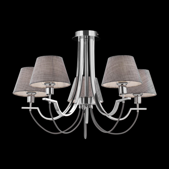 Цвет металлической арматуры (хром) прекрасно сочетается с серыми абажурами из рогожки. Отличительная черта дизайна светильников - провода в тканевой оплетке серого цвета.