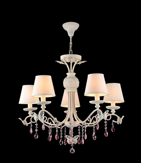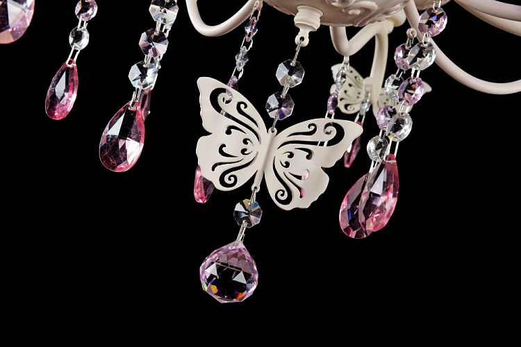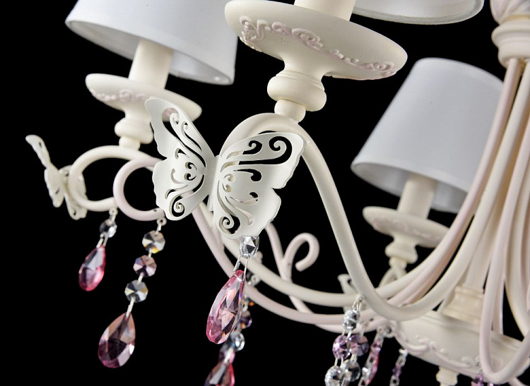 Арматура из металла. Декоративные элементы: шар в основании, бабочки из металла. Абажур из ПВХ покрыт белой тканью