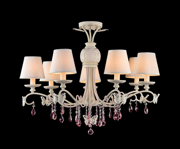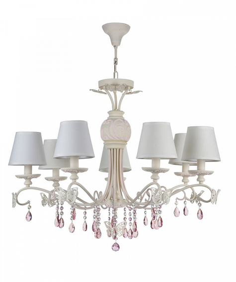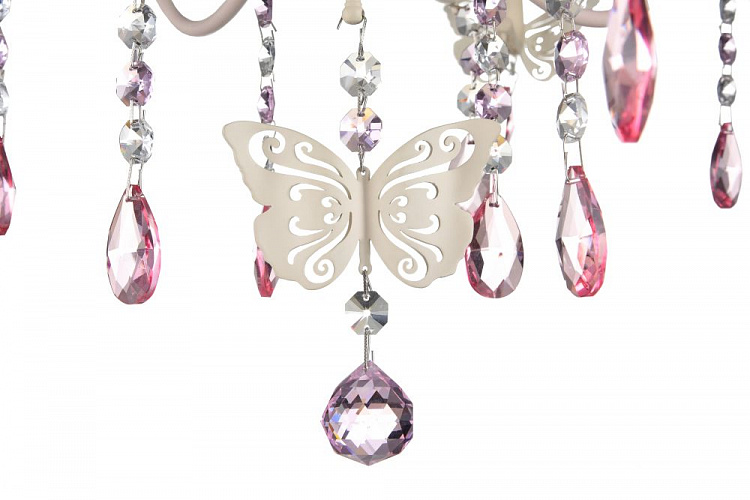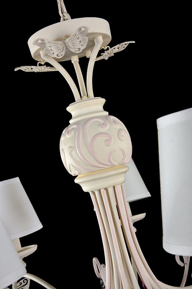 Арматура из металла. Декоративные элементы: шар в основании, бабочки из металла. Абажур из ПВХ покрыт белой тканью