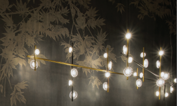 Каркас изготовлен из металла, диффузор прозрачный выполнен из муранского стекла. Доступен в следующих цветах: стальной, полированный кортен, матовое античное золото, светлое золото.