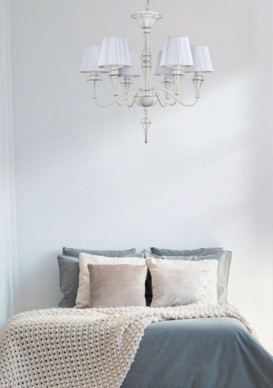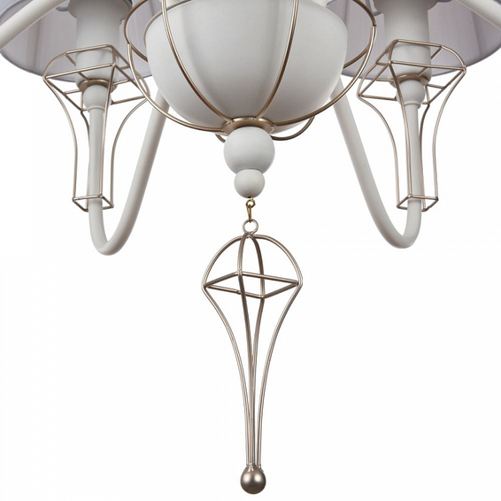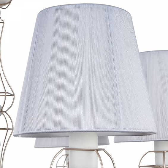 Арматура из металла. Декоративный каркас из золотой проволоки. Абажур из ПВХ покрыт тканью (нейлон) белого цвета.