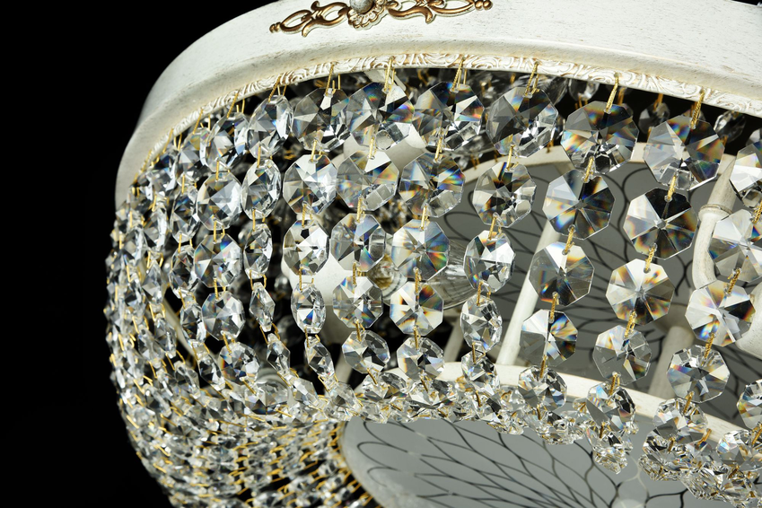 Арматура из металла. Основание декорировано стеклом с пескоструйным рисунком. Подвески из *хрусталя.