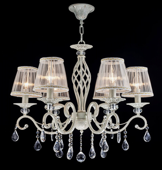 Арматура из металла. Абажур из плиссированной белой органзы. Подвески из *хрусталя.