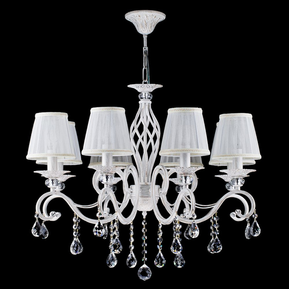 Арматура из металла. Абажур из плиссированной белой органзы. Подвески из *хрусталя.