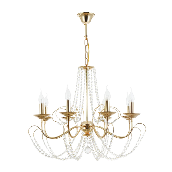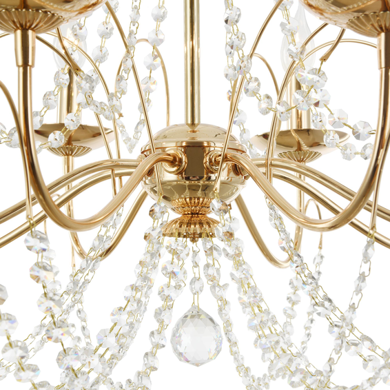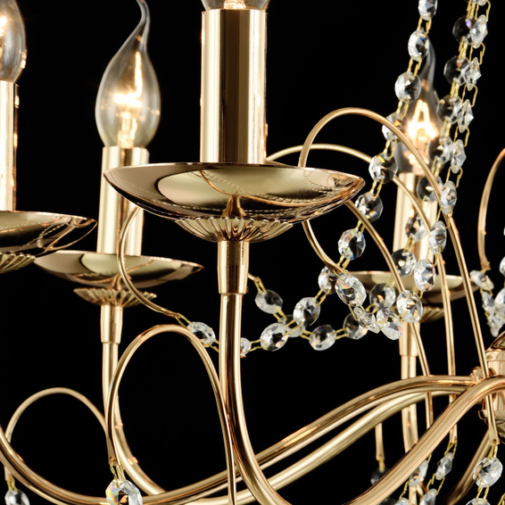 Арматура светильников витиеватой формы выполнена из металла золотого цвета. Все изделия декорированы хрустальными подвесками. Светильники Gracia выглядят легкими и воздушными благодаря свету, преломляющемуся сквозь многочисленные грани хрустальных подвесок.