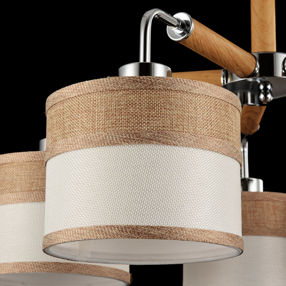 Двухцветные абажуры, сделанные из мешковины, сочетаются с древесной арматурой. Благодаря большому ассортименту изделий серии Helen легко выбрать светильник как для просторных помещений, так и для небольших.
