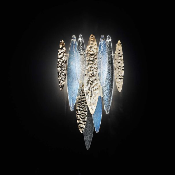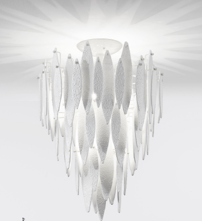 Каркас изготовлен из металла, окрашенного в цвет слоновой кости. Декоративные элементы в виде листьев из муранского стекла и металла. Доступен в следующих сочетаниях по стеклянным листьям: прозрачного цвета, опалового или белого цвета. Вместе с металлическими листьями: прозрачные, белые с металлом в золоте; прозрачные, цвета опал с металлом в золоте; прозрачные, черного цвета с металлом в стальном цвете.