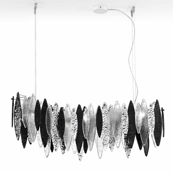 Каркас изготовлен из металла, окрашенного в цвет слоновой кости. Декоративные элементы в виде листьев из муранского стекла и металла. Доступен в следующих сочетаниях по стеклянным листьям: прозрачного цвета, опалового или белого цвета. Вместе с металлическими листьями: прозрачные, белые с металлом в золоте; прозрачные, цвета опал с металлом в золоте; прозрачные, черного цвета с металлом в стальном цвете.