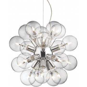 Люстра Ideal Lux Dea SP20 (74801) – прекрасный осветительный прибор для внутреннего использования, изготовленный компанией Ideal Lux. Модель можно найти в каталоге Ideal Lux 2019. Материалы и цвета Люстра Ideal Lux Dea SP20 (74801) – осветительный прибор, в основании которого используется металл. Цвет основания хром. Габариты Люстра Ideal Lux Dea SP20 (74801) имеет такие габариты: высота – 120см, диаметр – 55см. Технические характеристики Ideal Lux Dea SP20 (74801) Мощность основной лампы составляет 60Вт, цоколь типа E27. Количество источников света в модели Ideal Lux Dea SP20 (74801) – 20шт. Люстра подключается от сети 220в. Светильник Ideal Lux Dea SP20 (74801) обладает степенью пылевлагозащиты IP20, потому станет хорошим выбором для домашнего использования в сухих, непыльных комнатах. Светильник обладает минимальной степенью пылевлагозащиты, поэтому его не рекомендуют использовать в помещениях с повышенной влажностью и пыльностью, а также на улице. Брызги воды оказывают негативное воздействие на функциональность и могут стать причиной выхода из строя, что следует обязательно учесть при выборе места для монтажа.