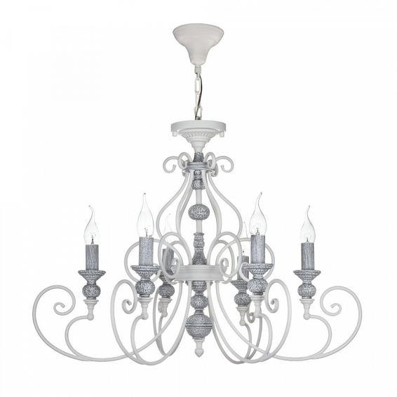 Арматура из металла. Декоративные элементы из полирезина. Абажур из ПВХ покрыт тканью белого цвета