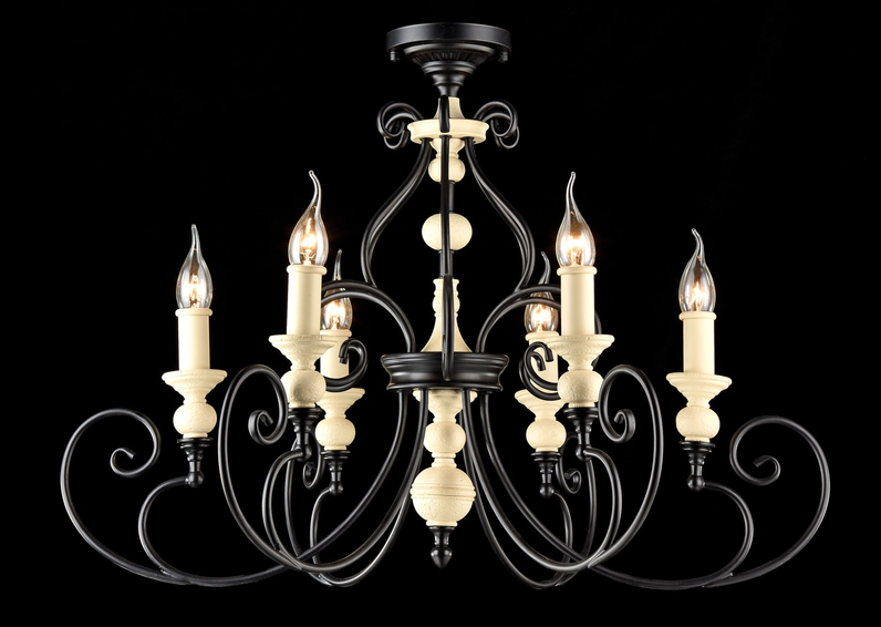 Арматура из металла. Декоративные элементы из полирезина. Абажур из ПВХ покрыт тканью белого цвета. Модель представлена в 2-х цветах. Цвет Чёрный - Артикул H631-PL-06-B