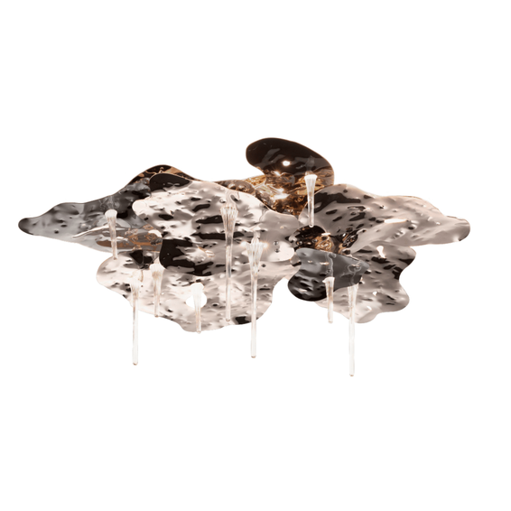 Металлический каркас доступен в разных вариантах отделки. Подвески из чистой стали в прозрачном стекле
