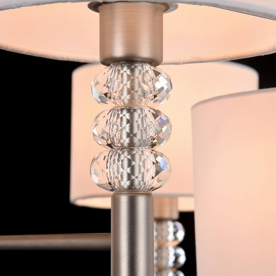 Арматура из металла. Рожки дополнены стеклянными элементами. Абажур из ПВХ покрыт тканью.