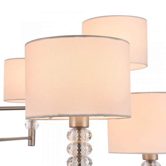 Арматура из металла. Рожки дополнены стеклянными элементами. Абажур из ПВХ покрыт тканью.