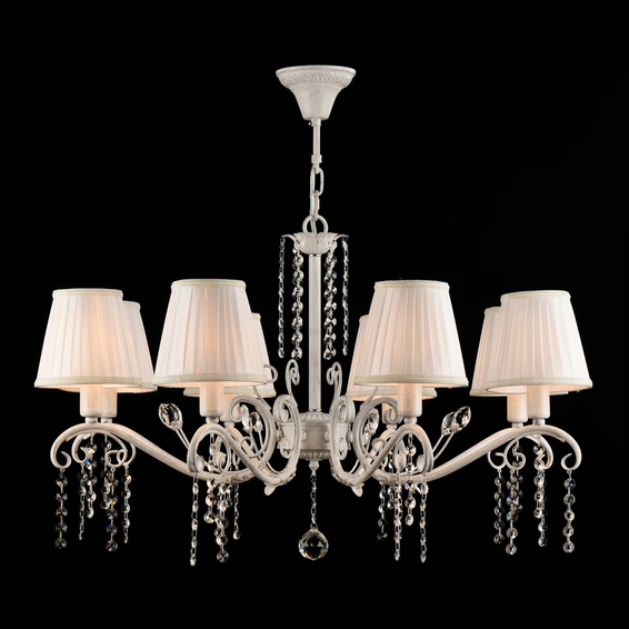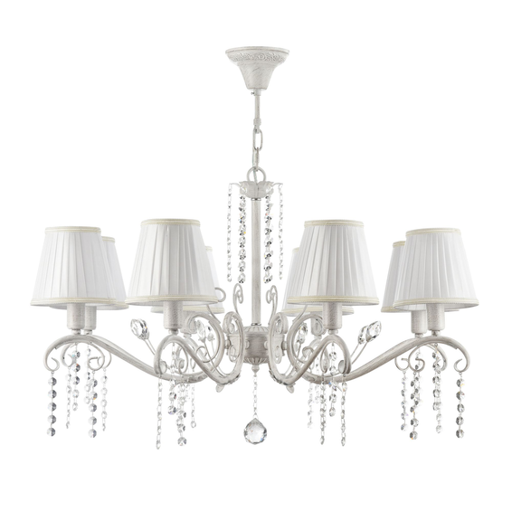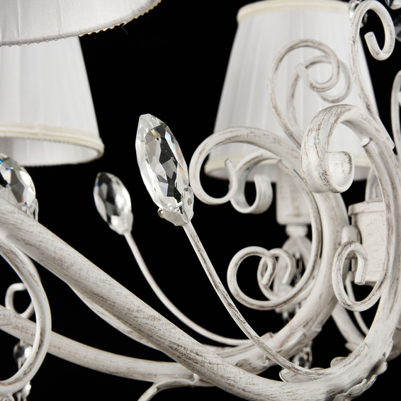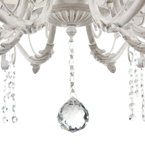 Благодаря уникальному цвету, белому с серым патинированием, и подвескам, светильники словно парят в воздухе и выглядят легкими и невесомыми.