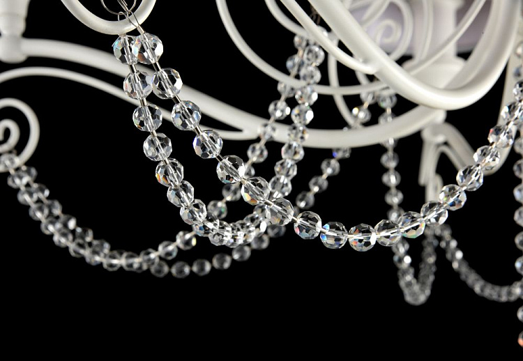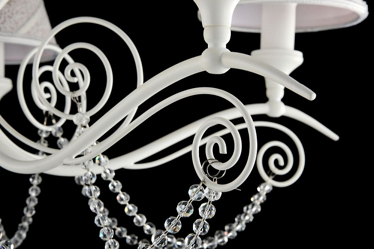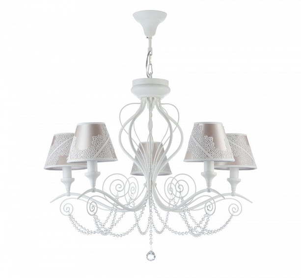 Арматура из металла. Абажур из ПВХ покрыт атласом и украшен кружевом. Подвески в виде бусин из стекла.