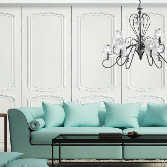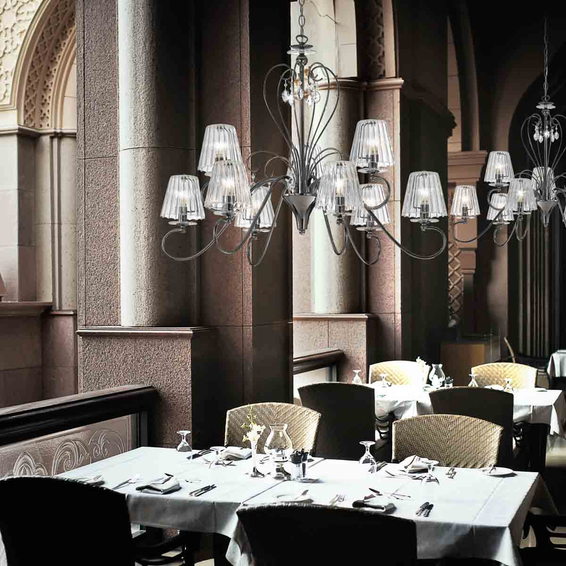 Металлический каркас доступен в разных вариантах отделки:хром,светло-золотой,черный никель. Прозрачный рассеиватель из стекла Pyrex. Коллекция украшена кристаллами Swarovski®