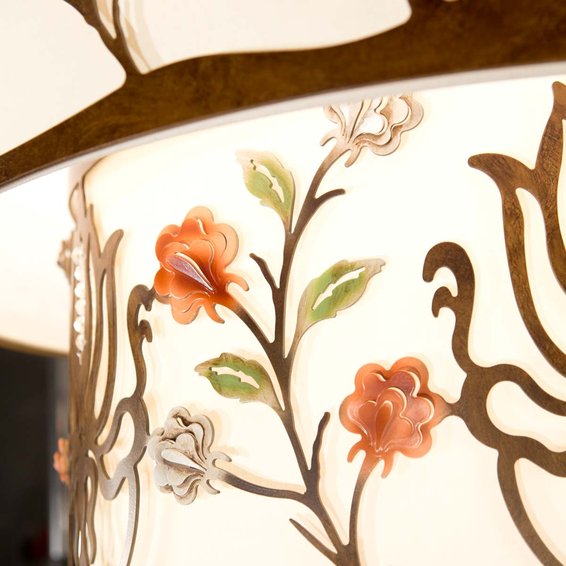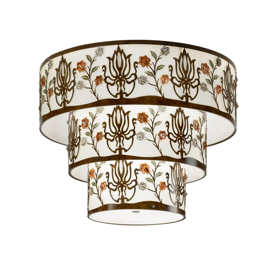 Металлический каркас доступен в разных вариантах отделки: черный никель с абажуром из лабиринта из соболя с золотом,светло-золотой с абажуром из коричневого хлопка,матовый абажур из коричневого хлопка,античная абажур с коноплей, азиатская роза с абажуром из кремового хлопка. Коллекция украшена прозрачными хрустальныйми кристаллами Swarovski® Примечание: позиции 537, 538 и 539 (кроме напольных и настенных ламп) имеют диффузор из поликарбоната с матовой отделкой.