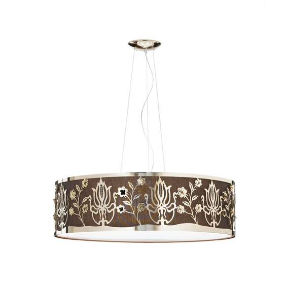 Металлический каркас доступен в разных вариантах отделки: черный никель с абажуром из лабиринта из соболя с золотом,светло-золотой с абажуром из коричневого хлопка,матовый абажур из коричневого хлопка,античная абажур с коноплей, азиатская роза с абажуром из кремового хлопка. Коллекция украшена прозрачными хрустальныйми кристаллами Swarovski®Примечание: позиции 537, 538 и 539 (кроме напольных и настенных ламп) имеют диффузор из поликарбоната с матовой отделкой.