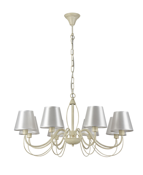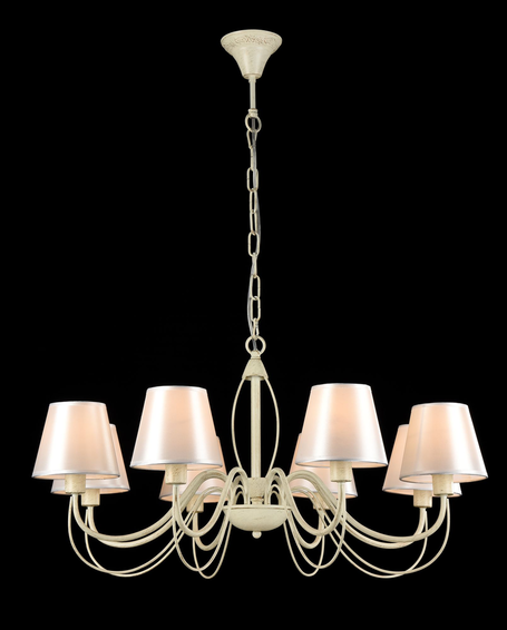 Арматура светильников — из металла кремового цвета, а небольшие аккуратные абажуры — из атласа.