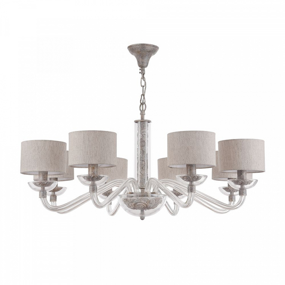 Арматура из металла. Комбинированный каркас из полирезина и прозрачного стекла. Абажур из ПВХ покрыт тканью.