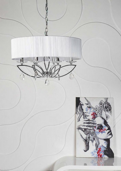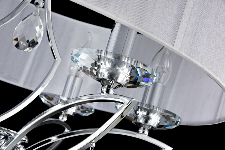 Арматура из металла. Абажур из ПВХ покрыт нитями белого цвета. Декоративные подвески