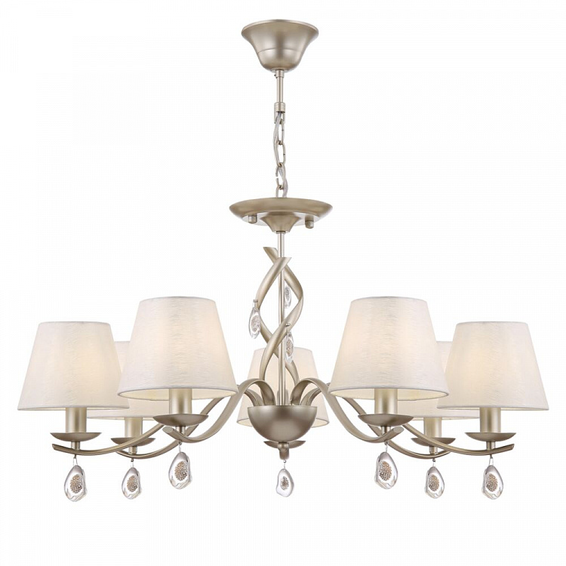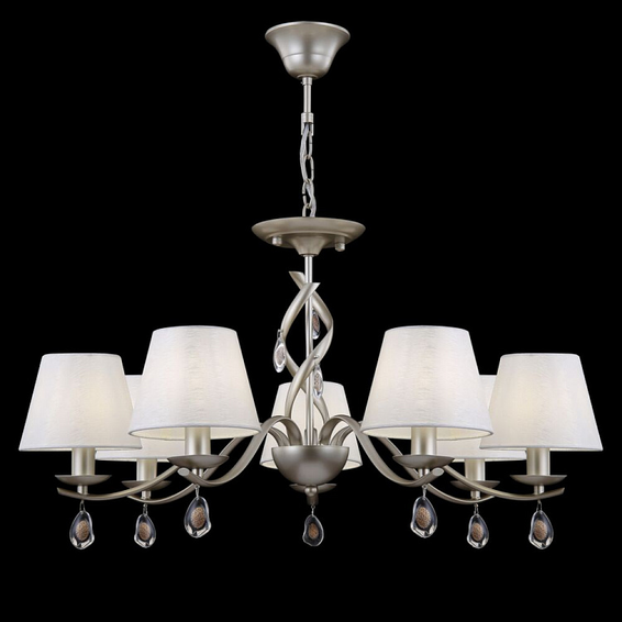 Арматура из металла. Плафоны текстиль на ПВХ. Украшены декоративными подвесками и элементами в форме волн.