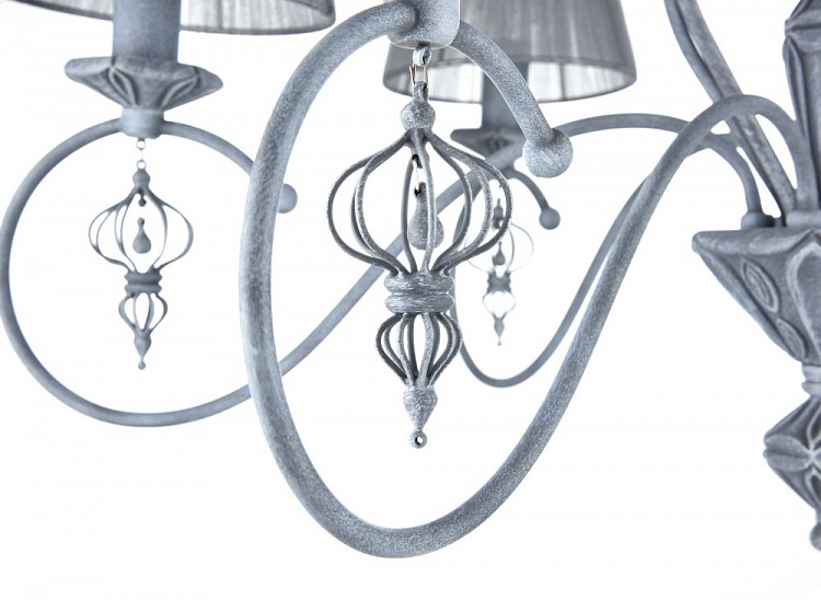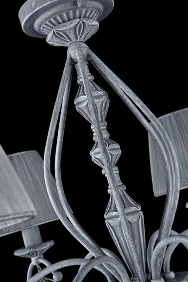 Арматура и декоративные элементы из металла. Абажур из органзы серого цвета.