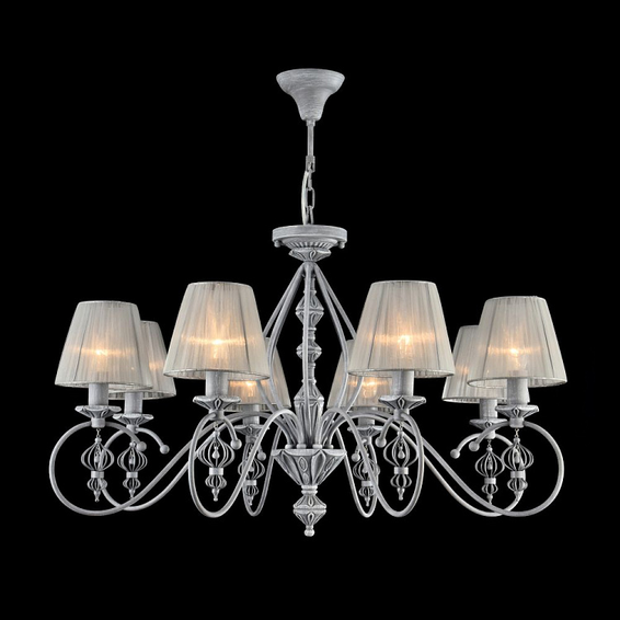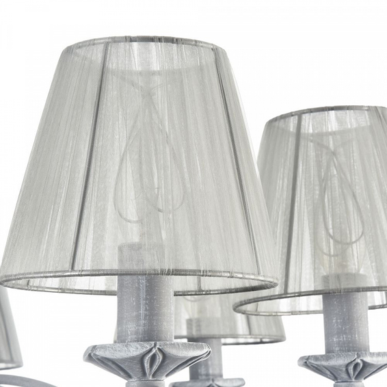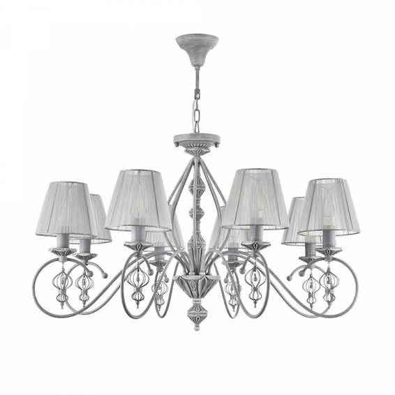 Арматура и декоративные элементы из металла. Абажур из органзы серого цвета.