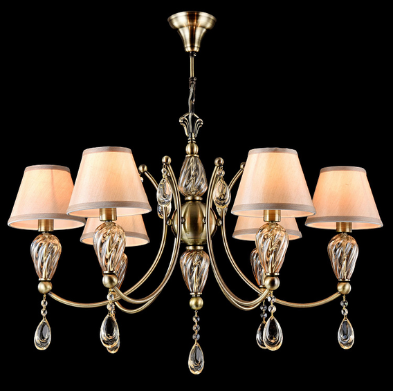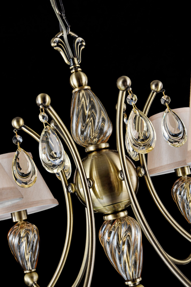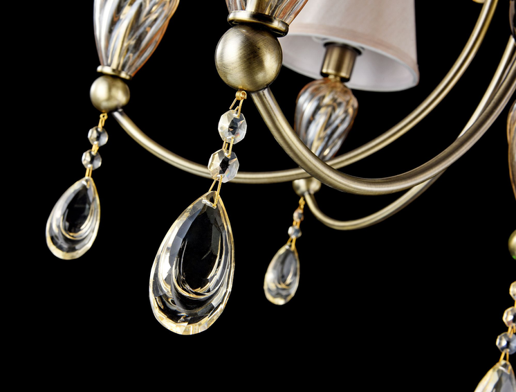 Арматура из металла. *Хрустальные подвески в виде капель с силуэтом. Стекло и *хрусталь цвета «шампань».