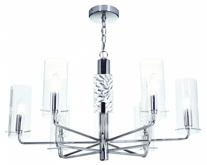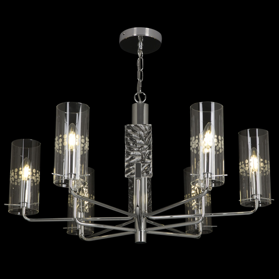 Арматура из металла. Плафон из стекла с узором, созданного по технологии UniqueGlass. Основание плафона - цилиндр.