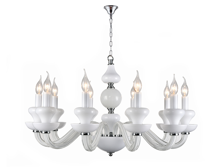 Модель относится к коллекции 1900. Подвесная люстра без плафонов осветит помещение площадью 33 кв. м. Производитель рекомендует использовать лампы накаливания с мощностью 60 W. Модель представлена в 3-х цветах: Коньячное золото - Артикул 1910/S cognac, Дымчатое стекло - Артикул 1910/A fume, Белый - Артикул 1910/A white.