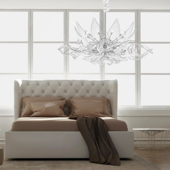 Каркас изготовлен из металла, подвески - белый жемчуг из муранского стекла или декоративные элементы Swarovski® Crystals. Доступен в отделке хром и светлое золото.