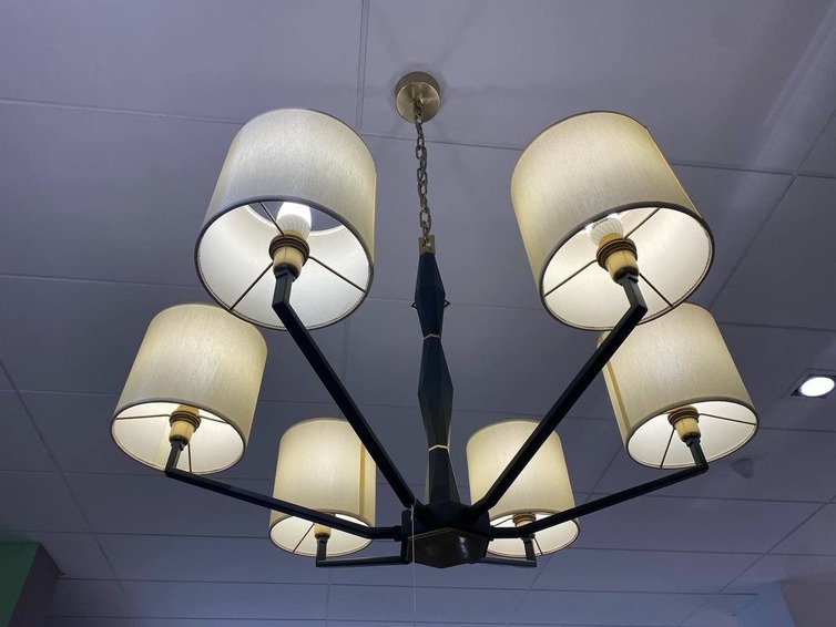 Люстра Officina Luce Ар-деко / Ар-нуво / Американский Стиль ар-деко зародилсяв начале XX века. Своим появлением он обязан Франции и французам и по сути представляет собой сочетание модерна и неоклассицизма. Стиль ар-деко в интерьере – это обилие дорогих экзотических материалов, сочетание извилистых и прямых линий, фантастические росписи и гобелены с драконами и павлинами. Стиль ар-деко считается самым оригинальным стилем в оформлении интерьера, тяготеющим к помпезной роскоши, великолепию и абсолютно не принимающим ни аскетизм, ни минимализм. Очень часто при оформлении помещения в таком стиле используются роскошные малые архитектурные решения и выдающиеся элементы декора: фонтаны, подиумы, кованые решетки, экзотические веера, мраморная отделка и витражи. Мебель для стиля ар-деко тоже должна быть необычной и очень дорогой – с использованием светлой древесины, натуральной кожи, хромирования Назначение для помещения Наличие подвесок нет Материал каркаса металл Количество лампочек 6 Наличие плафонов нет Наличие абажура да Материал абажура ткань Тип цоколя E14 Тип светильника горизонтальный, подвесной, многорожковый