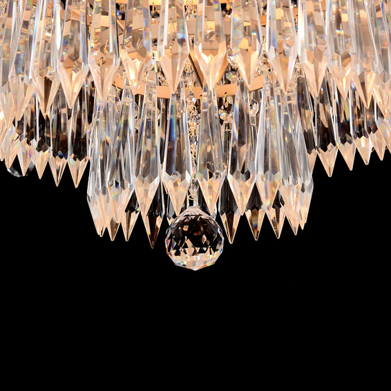 Арматура из металла. Обрамление латунной лентой. Дополнены отражателями из полированного (глянцевого металла). Подвески различных огранок. Модель комплектуется лампочками Voltega и средством для чистки хрусталя. Дополнительный год гарантии.