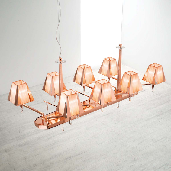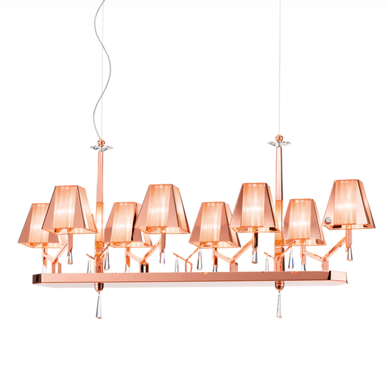 Металлический каркас доступен в различных вариантах отделки:медь,чистая сталь,черный никель.Подвеска из хрусталя.Материал плафона стекло ручной работы.Доступен с материалом плафона металл и бандаж из органзы (код 534).