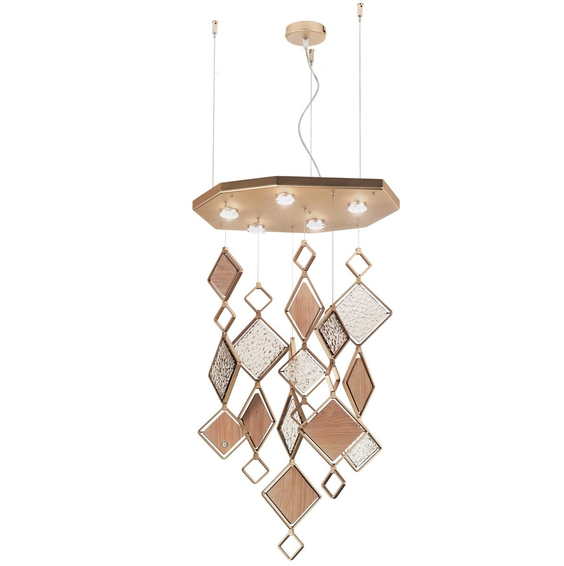 Металлический каркас доступен в различных вариантах отделки.Декоративные подвески из оникса и из муранского стекла.