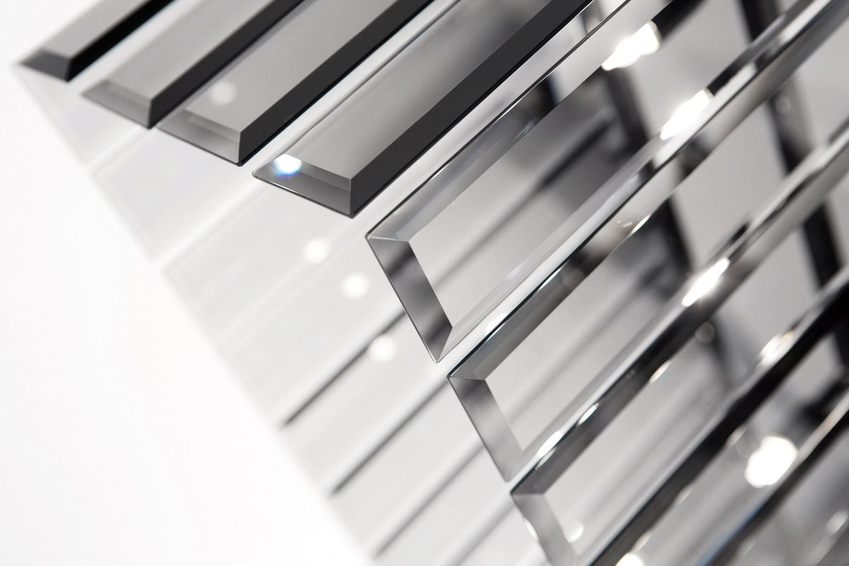 Металлический каркас доступен в различных вариантах отделки. Стекла рассеивателя с центральной гравировкой или без нее доступны в разных цветах.