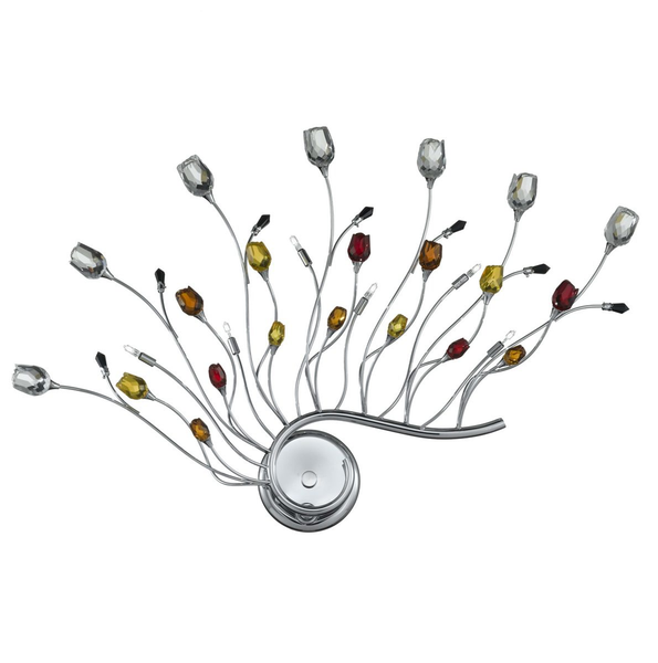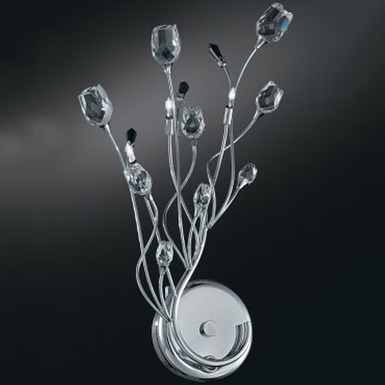 "Металлический каркас доступен в различных вариантах отделки:хром, 24-каратное золото.Прозрачные или разноцветные хрустальные розы. "