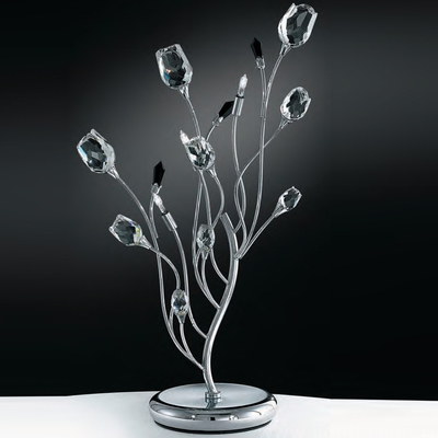 "Металлический каркас доступен в различных вариантах отделки:хром, 24-каратное золото.Прозрачные или разноцветные хрустальные розы с черными или прозрачными кончиками. "
