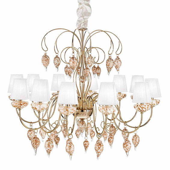 Каркас изготовлен из металла, чашки и подвески из муранского стекла, абажуры из органзы.